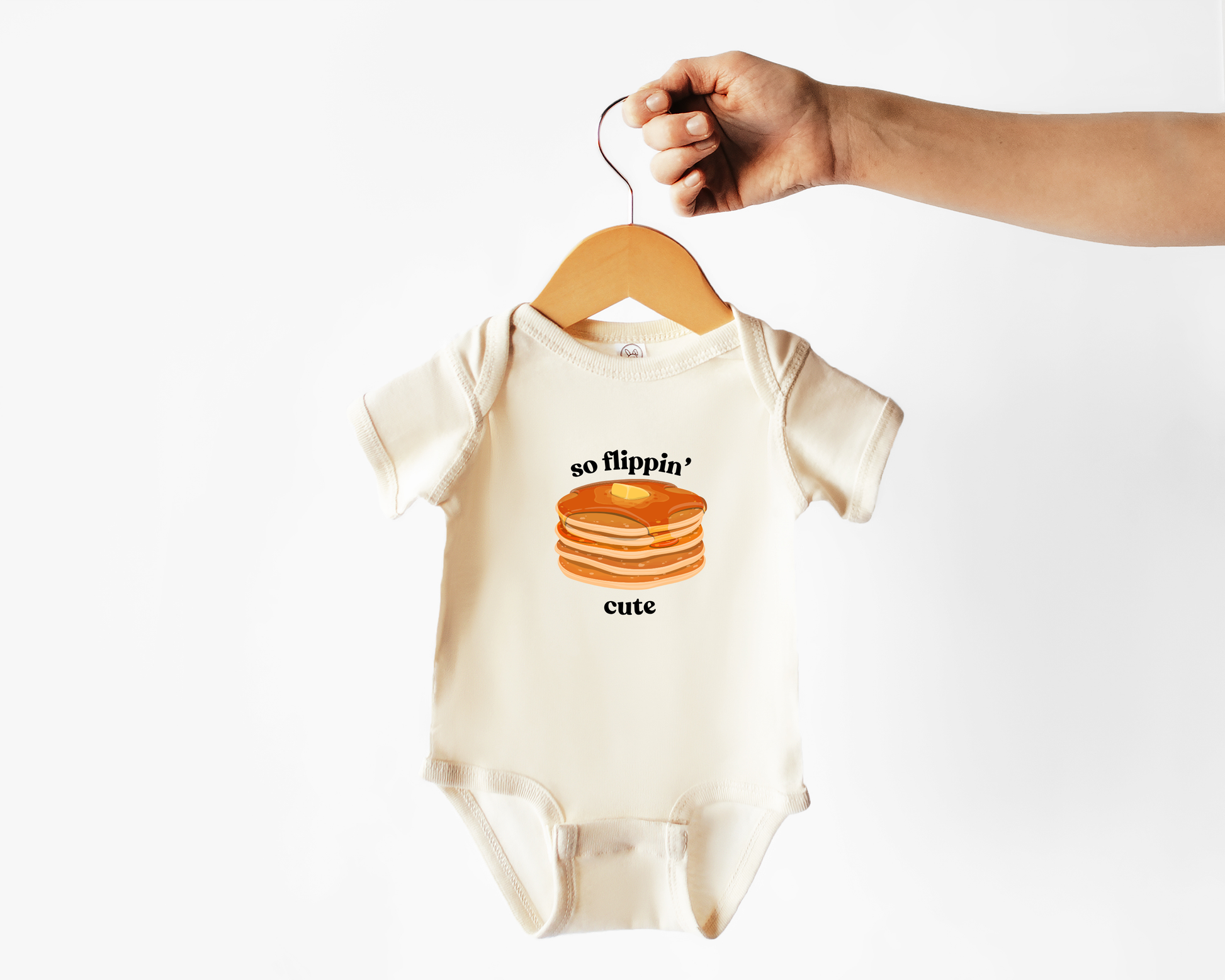 Your baby is so flippin' cute! Made from soft, breathable cotton, this cozy outfit features a pancake-themed design that’s as cute as it is comfy. With easy snap closures for quick diaper changes and a stretchy neckline for hassle-free dressing, it’s perfect for everyday wear. Great for pancake-loving families or anyone who thinks breakfast is the best meal of the day!